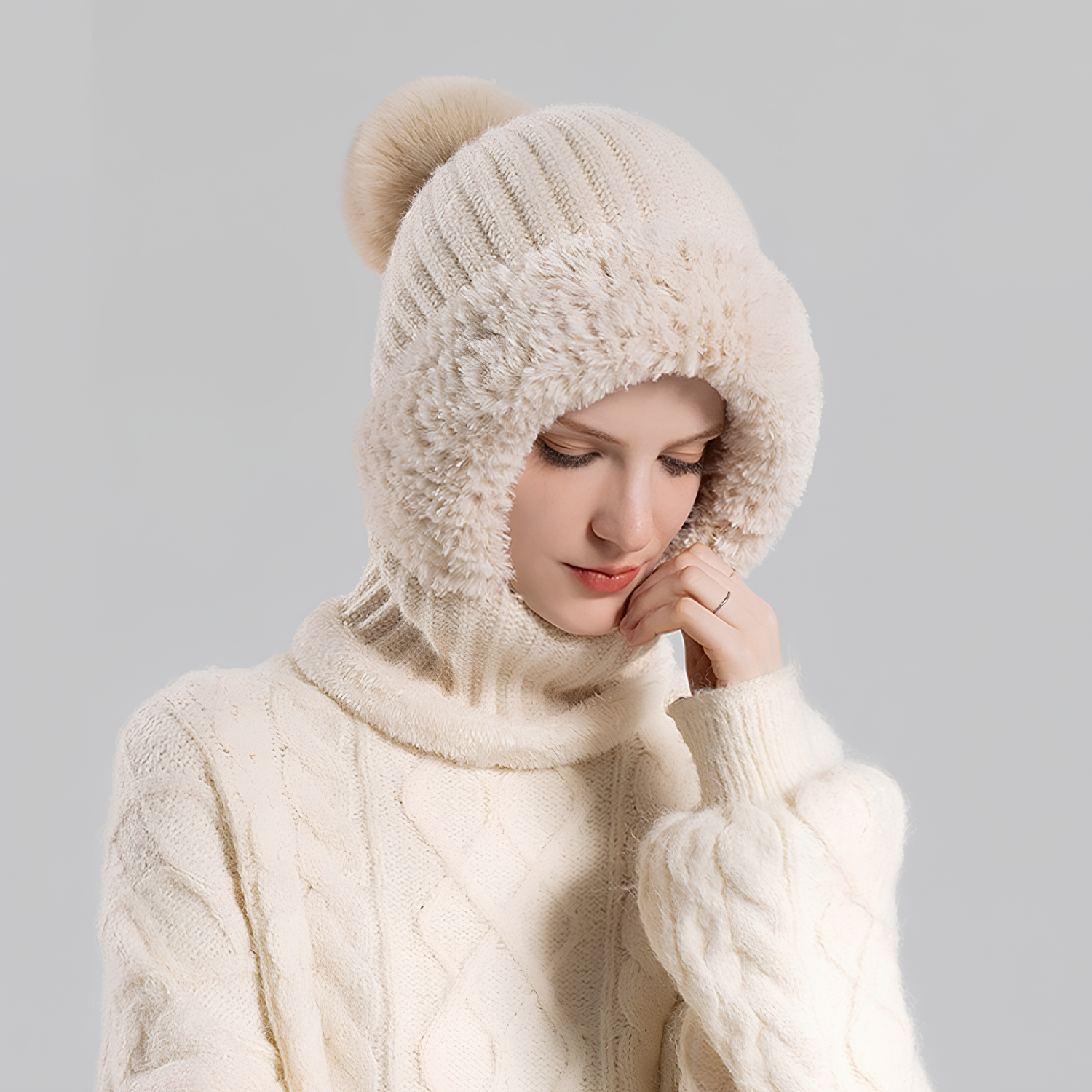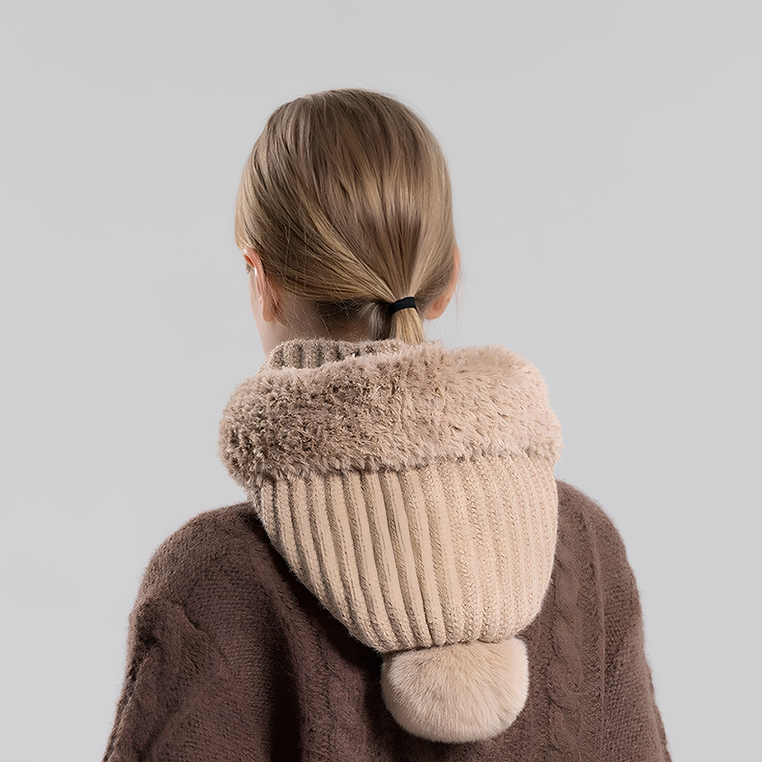 Crafted from a gentle acrylic knit with a warm faux-fur lining, it feels soft against the skin while adding extra insulation. Lightweight yet cozy, it’s perfect for everyday wear in cold weather.